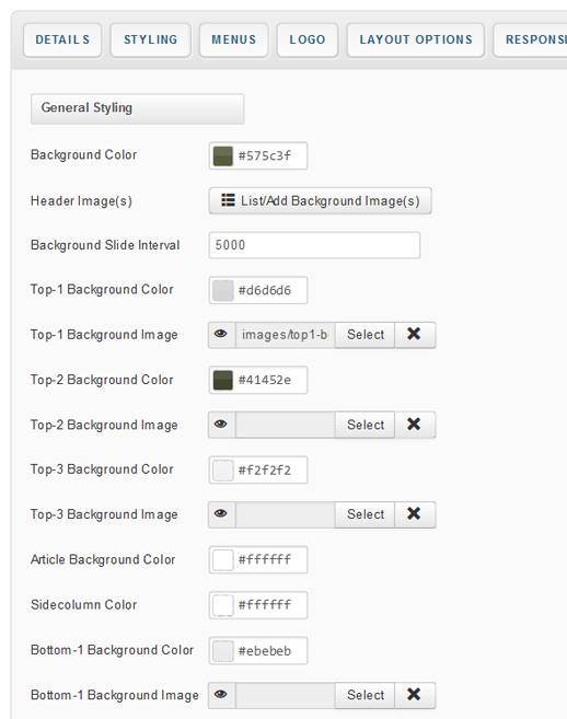 Your template parameters can be access directly from your Template Manager giving you access to a host of features including a selection of template styles, some colour choosers to help customise your template headers and links, a number of layout options and easy to use logo settings.