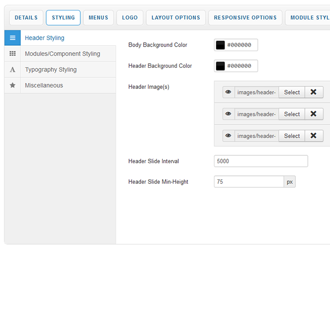 Module Style Overrides allow you to style individual module positions to your own taste. This greatly extends the control of how each of your module positions are displayed with a host of styling options including background image, background color, text color, heading color, button color and module padding. Multiple overrides can be created, each applied to the module position of your choice.